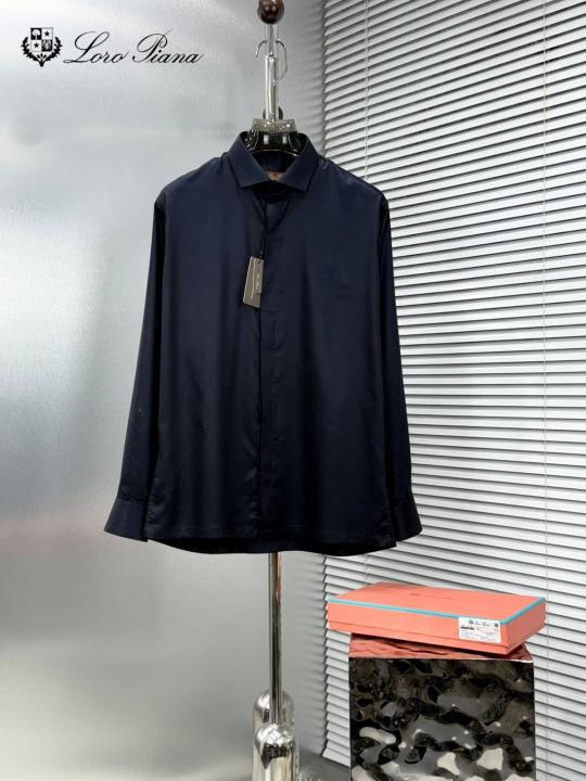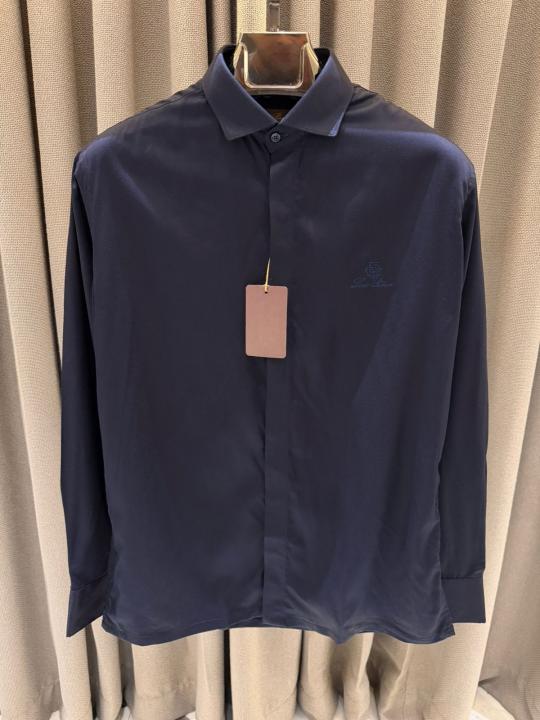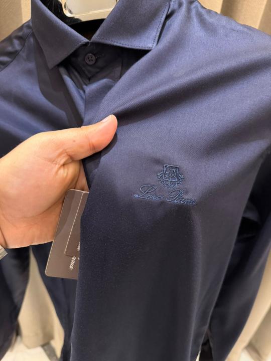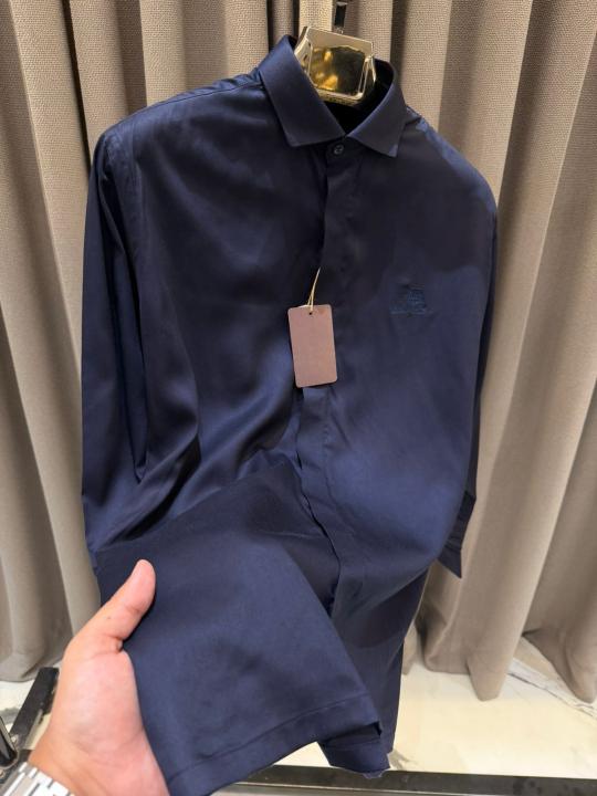 Home Shirts Lorro Piana Imported Korean Fabric Box Pack Full Sleeves Shirt Navy